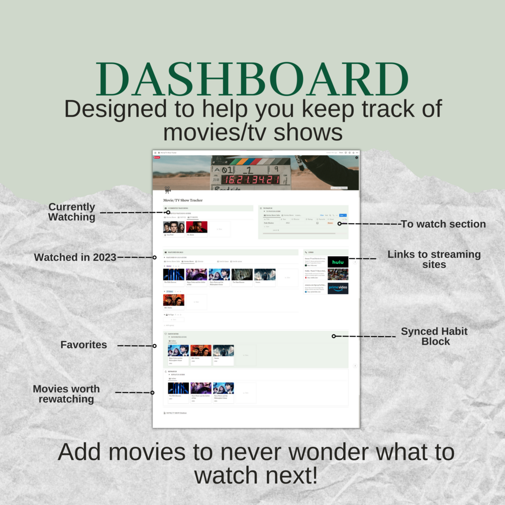 Movie Tracker Notion Template Tracker Watching shows tracker Movie Planner Movies to Watch Notion Dashboard Digital TV Show Tracker